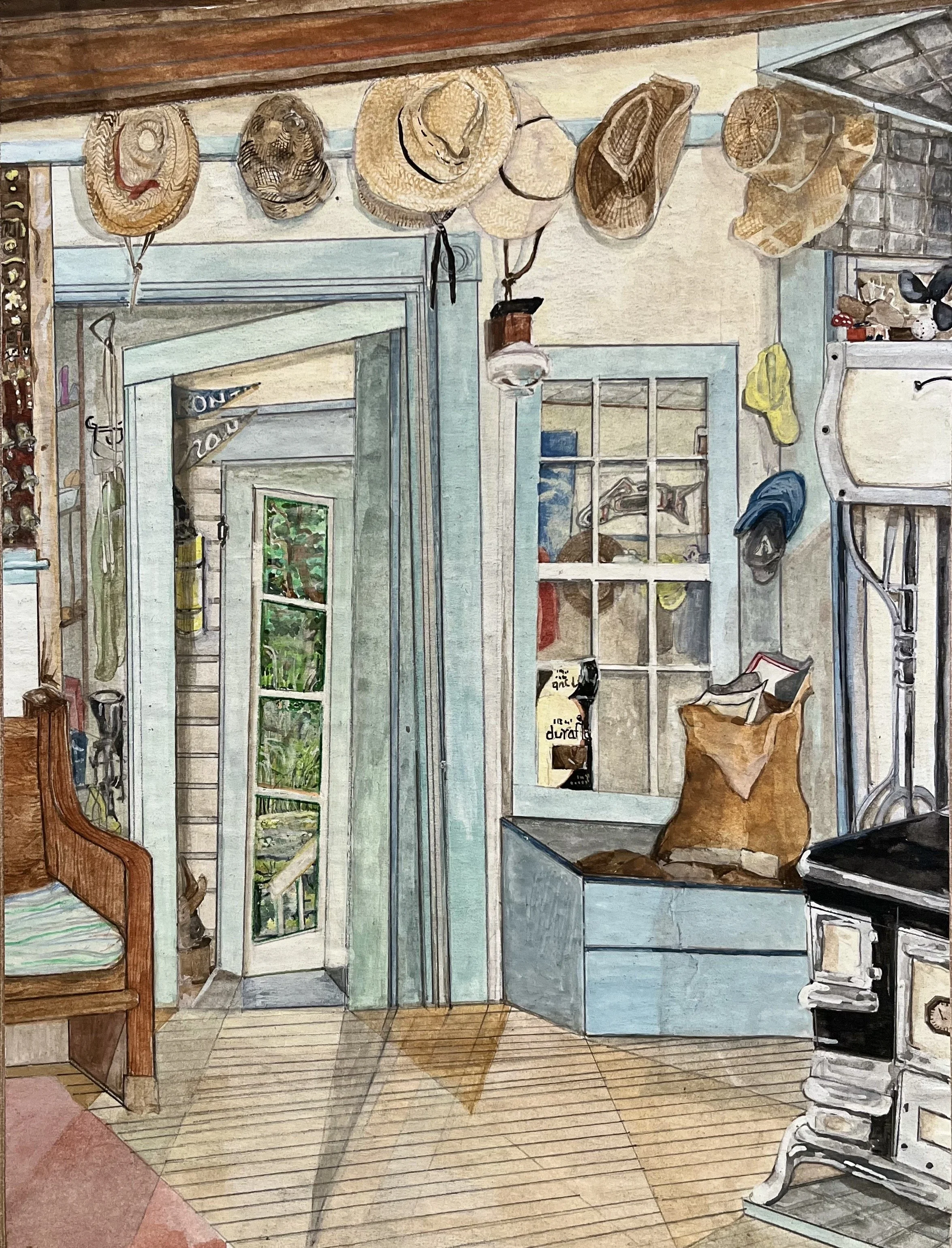 Some place memories become composites. The changes that happened in your time spent there combine and compile, making a memory place that never actually existed in the form you remember. Sizes and scale are among the first concepts to skew. Often you have a fuzzy recollection of something that was going on “over there.” The periphery bends and blurs. These paintings render places I remember.